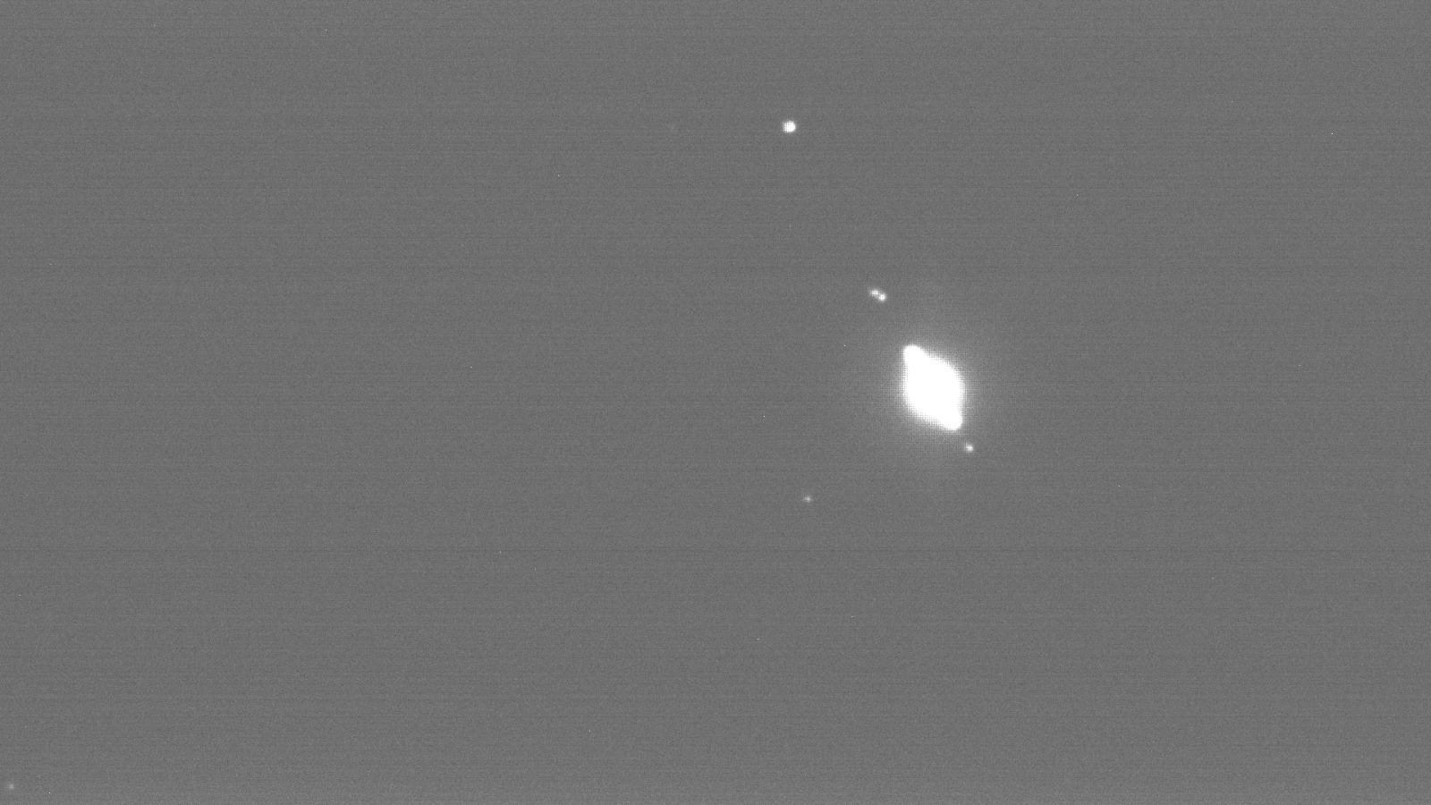 Saturno y sus satélites, ahora mejor separados Dione y Rhea, desde el observatorio Planetaria de Actuel, el 17 de septiembre de 2025